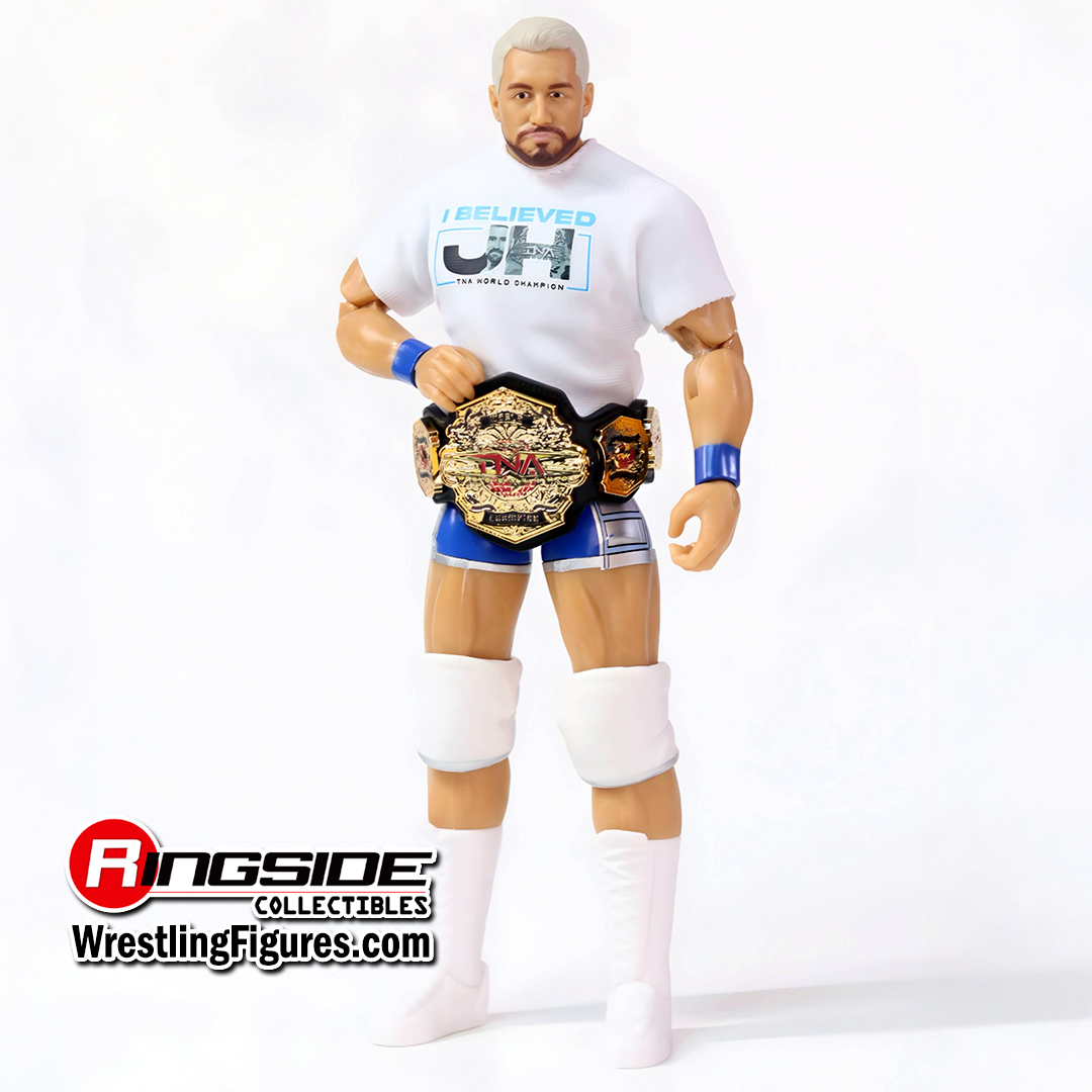 Accessories Include: Alternate Head, Alternate Hands, Joe Hendry Microphone, Fabric T-Shirt and TNA Championship Belt!