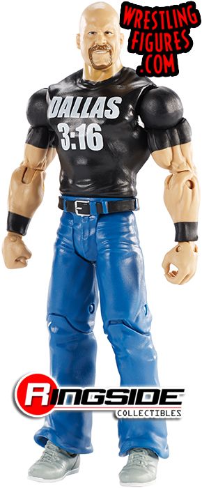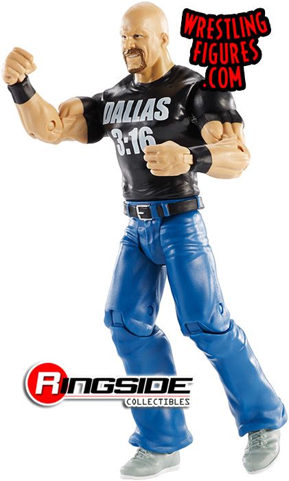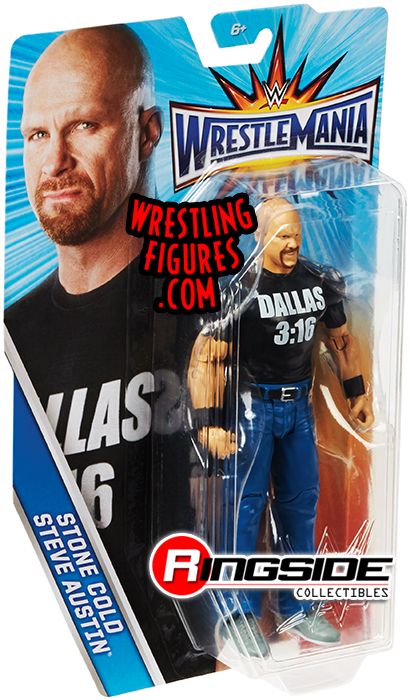 It's beginning to look a lot like WrestleMania with the Mattel WWE WrestleMania 33 Series 'Stone Cold' Steve Austin! The Rattlesnake has a sly smile and a 'Dallas 3:16' shirt to go along with his blue, butt kickin' blue jeans.